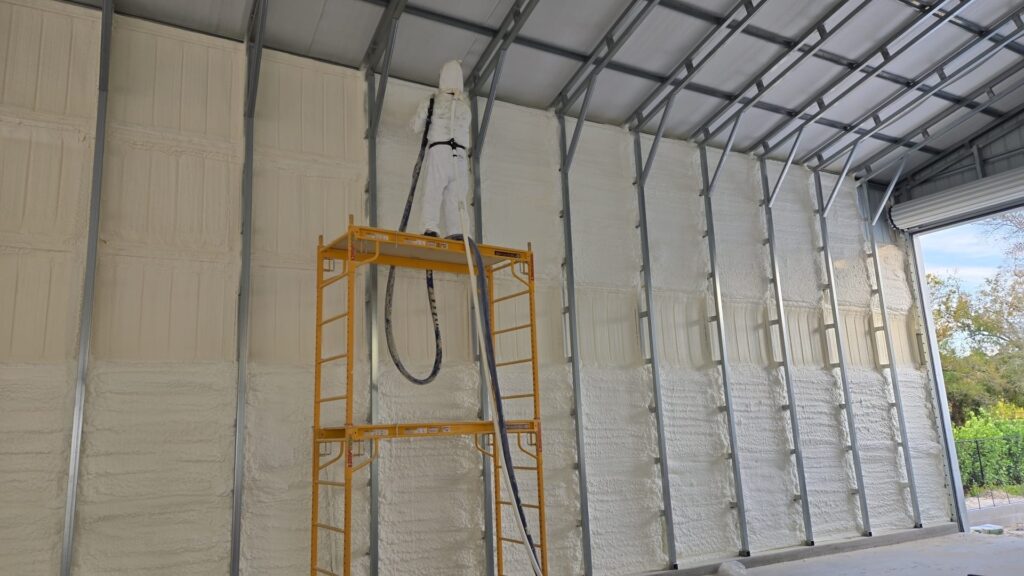Closed cell blocks water, vapor, and humidity in crawl spaces, exteriors, and steel structures, protecting buildings from Florida’s damp climate.